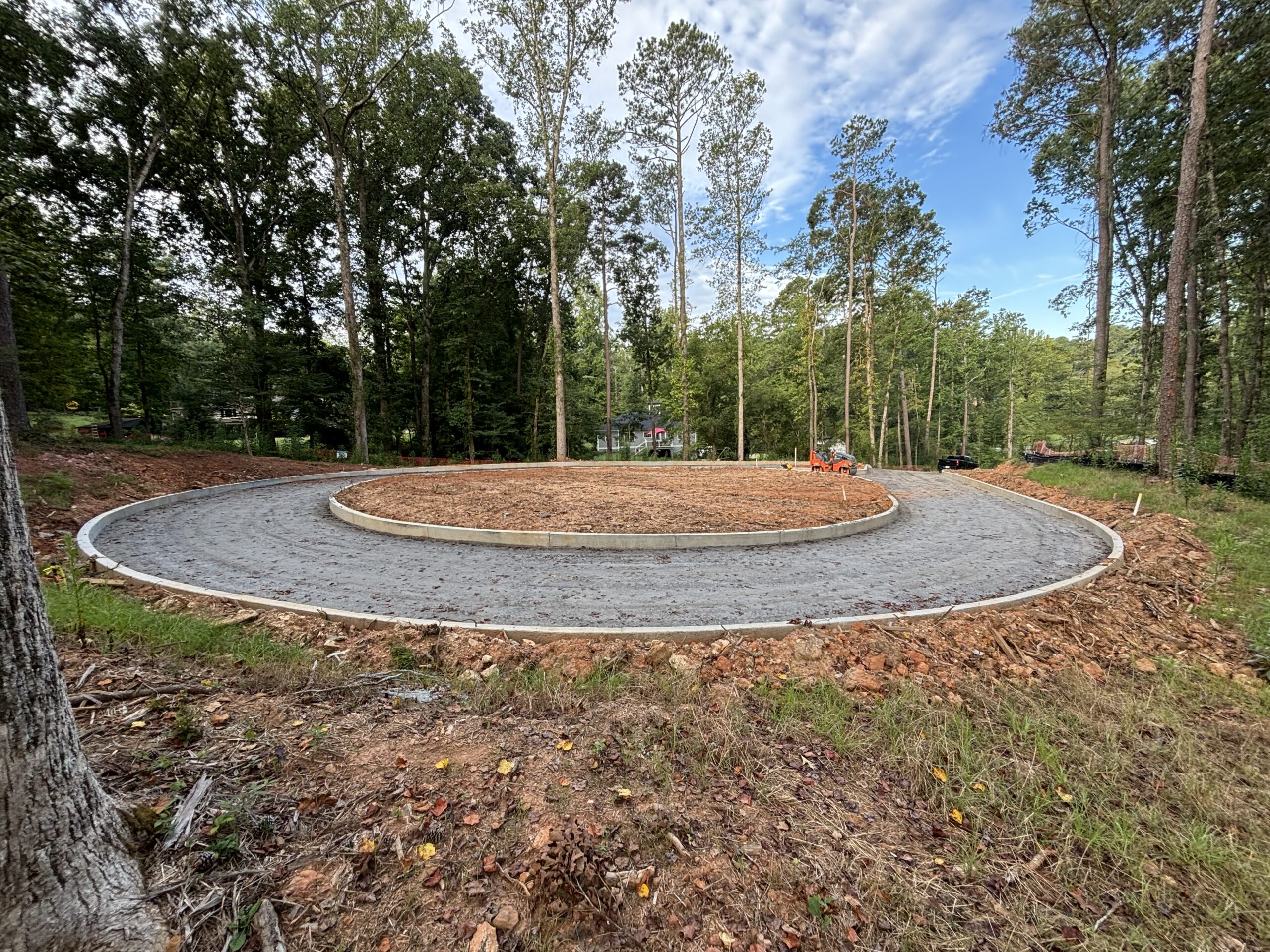 Designing a large circular turnaround through wooded, sloping terrain demanded both precision and flexibility. We laid out the curve on‑site, tweaking as trees and grade guided us, until dimensions felt just right for driver movement and aesthetic harmony.